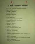 La propuesta principal fue crear juegos a partir de los «objetos» de sus miedos, y así compusimos pareados (para reírnos de brujas, fantasmas, esqueletos, o vampiros), jugamos con laberintos, contruimos puzzles, acertamos adivinanzas, coloreamos a vampiros, picamos calabazas, vimos la película Monstruos S.A., y escuchamos un cuento «El Fasntasma con Asma».