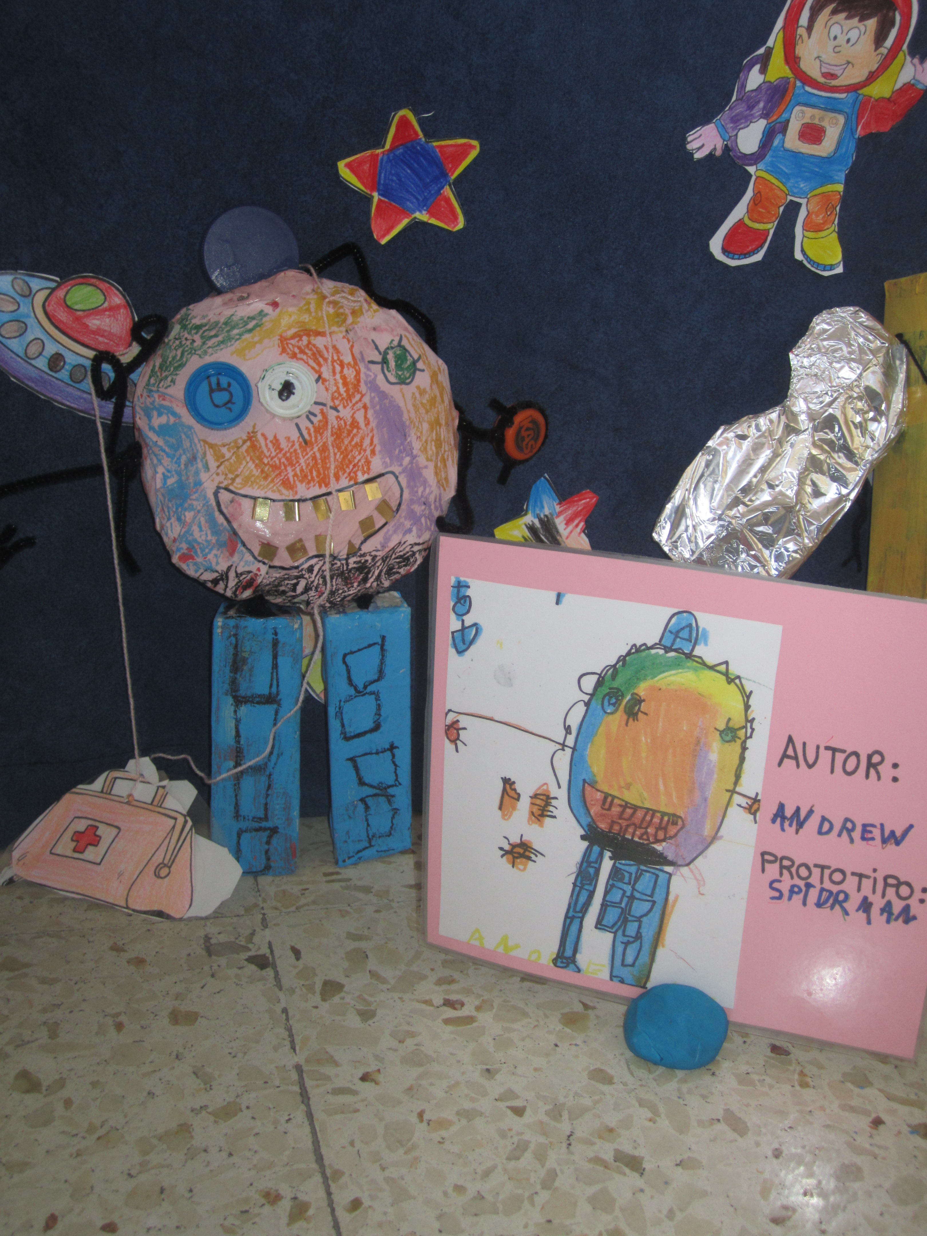 A. 5 años. Recibimos el mes de Abril y con él viajamos a Robotilandia. En esta ocasión he incluido no sólo un dibujo si no tambiñen la “creación real” de ese dibujo. L@s que habéis leído el Proyecto: Yo, Robot, ya sabéis que mis alumn@s este último mes ha creado originales robots precisamente tomando como punto de partida un dibujo. No podía ser de otra forma, que el mes de Abril viniera de la mano de uno de los dibujos que más me gustaron. A. de 5 años imaginó y dibujó cómo quería que fuera su futuro Robot. Posteriormente vió cómo cobraba “vida” su dibujo, tras un gran trabajo en el taller. Ya lo dijo un gran artista… Todo lo que imagines, puede ser real. Pablo Picasso. “Yo, Robot”, ABRIL 2016