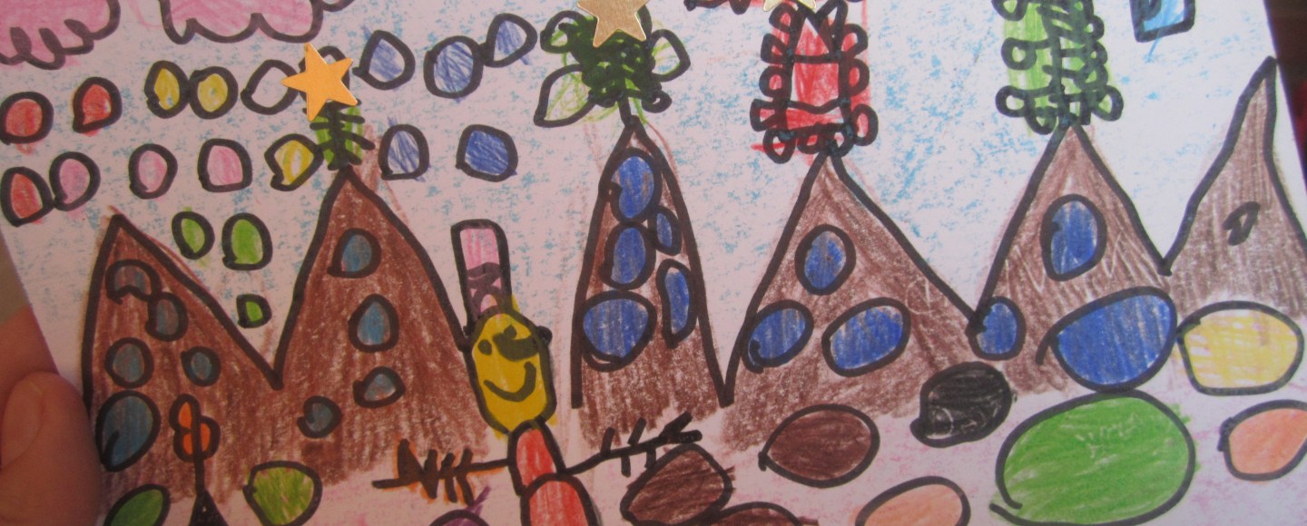 Así cada uno eligió a su amigo/a, y le dibujó un dibujo de la Navidad, o del Invierno, o de lo que quisiera, y el mensaje escrito fue común «Feliz Navidad»; no me pareció mal no obviar las fiestas en las que estábamos. Por lo tanto el mensaje fue estándar, y la variedad vino con las pequeñas obras de arte (ya sabéis que el objetivo no era la actividad de lecto-escritura, ya que tan solo era un copiado).