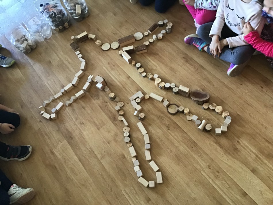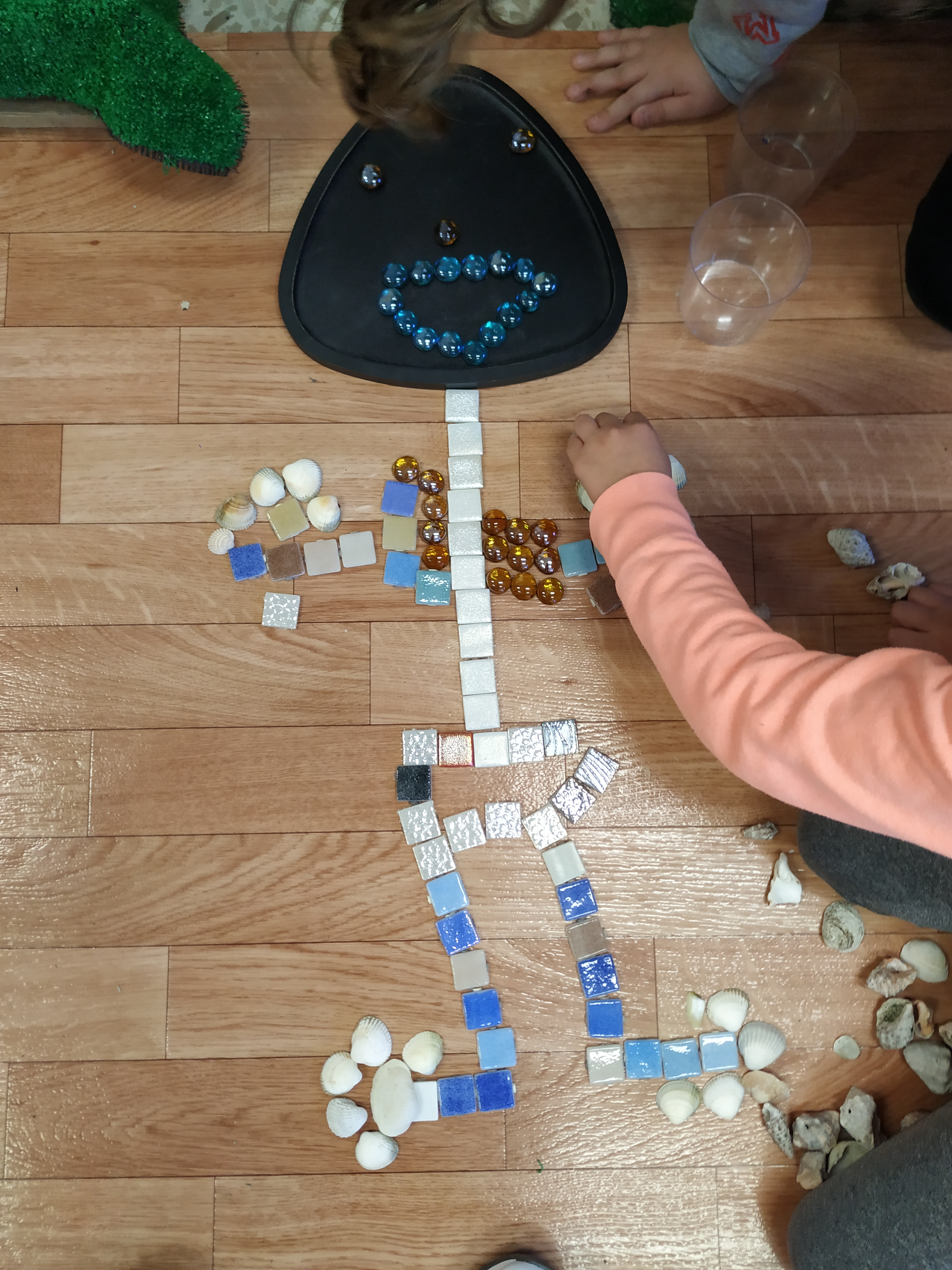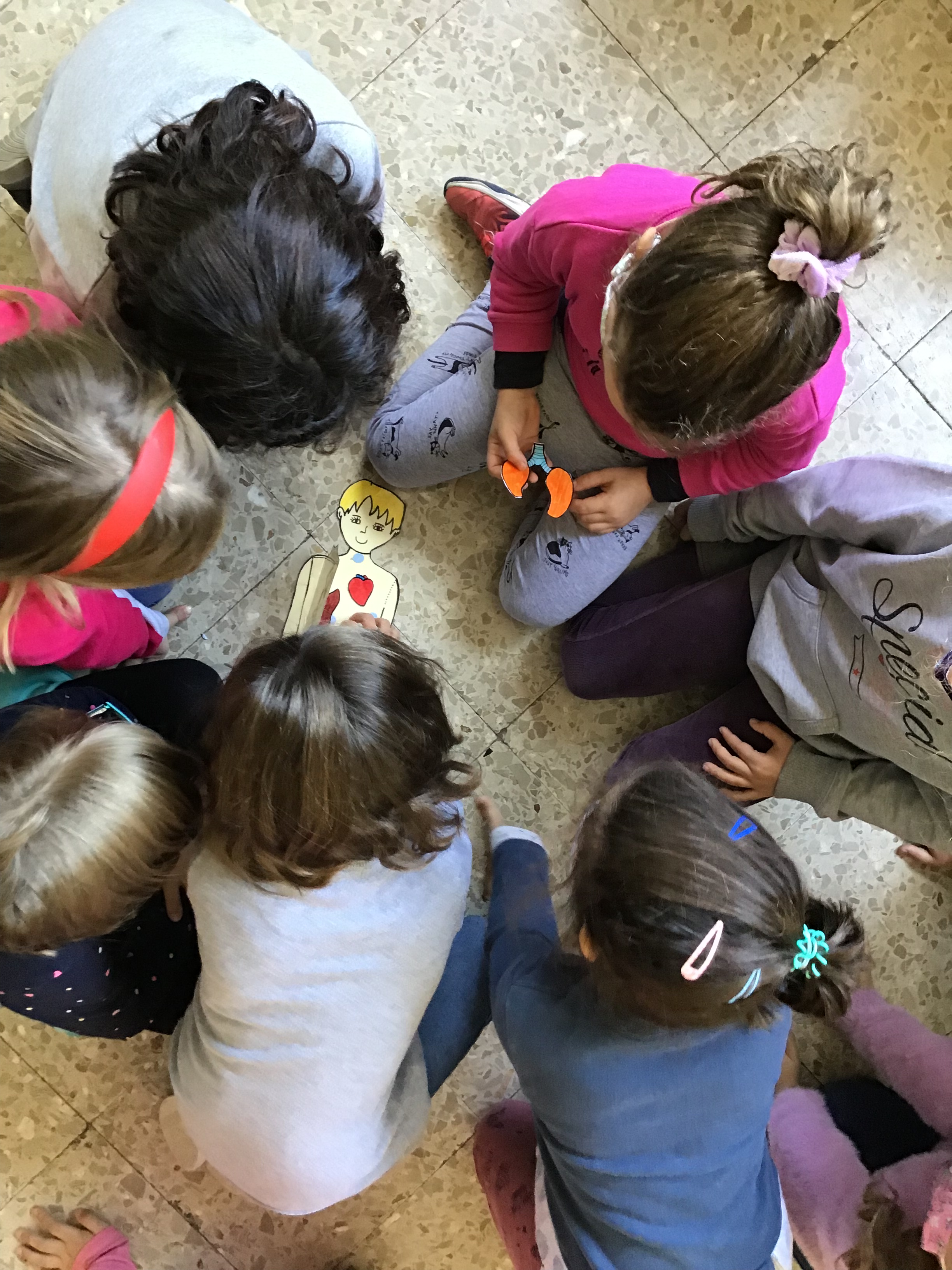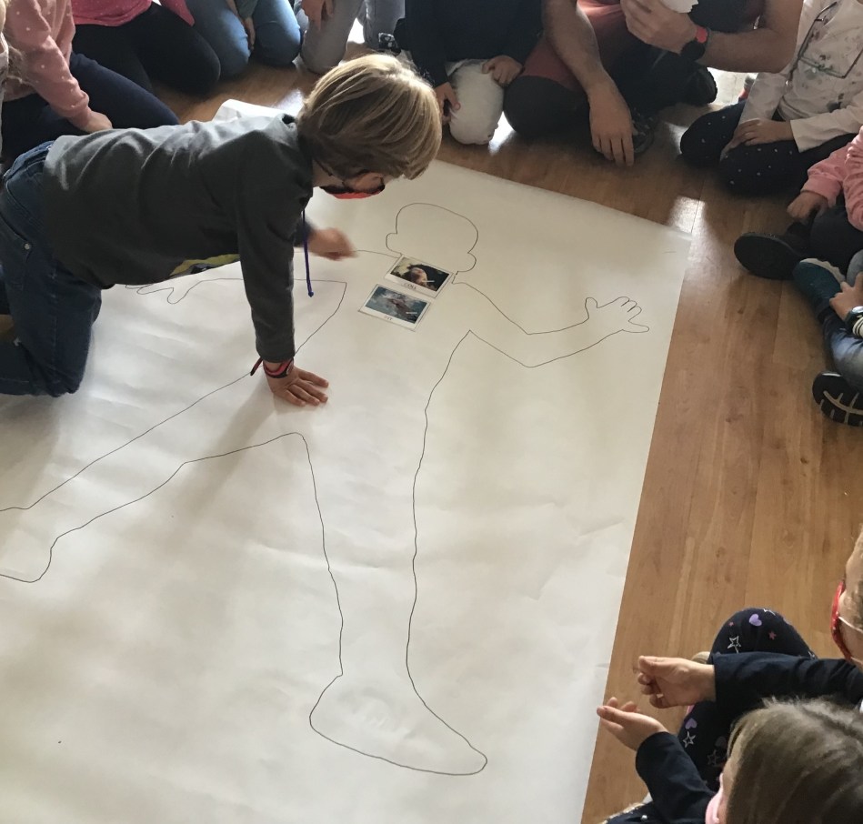 A partir de ahí se abrió un pequeño debate sobre ¿cuántos huesos tienen las personas? ¿cuáles son los diferentes tamaños de un cuerpo según eres un bebé, un niño o un papá? ¿dónde está el corazón? Hubo una lluvia de ideas, preguntas e incluso respuestas bastante interesante y decidimos encauzar nuestra nueva investigación a viajar por nuestro cuerpo.