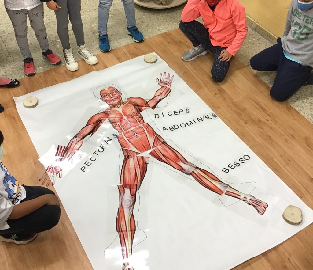 Los músculos fue una parte del proyecto muy divertida, pues muchos asociaron en seguida el deporte, el gimnasio o la salud con los bíceps, los pectorales o los abdominales. Imaginaros la de anécdotas domésticas que escuché: «mi padre hace 100 abdominales todos los días» «mi hermana tiene los gemelos duros por que va en bicicleta» «mi tio puede mover las tetas» (intuyo que serían los pectorales).
