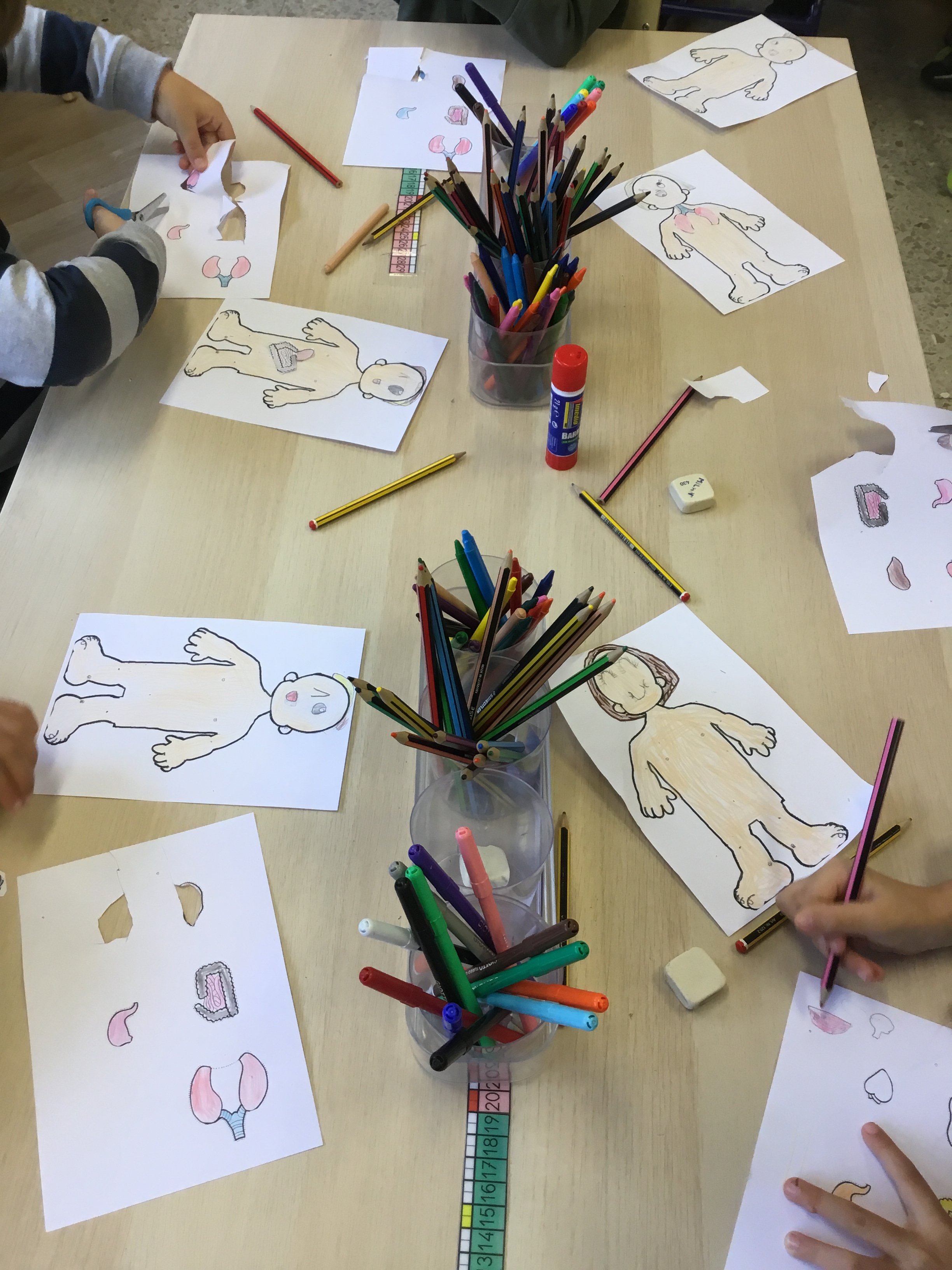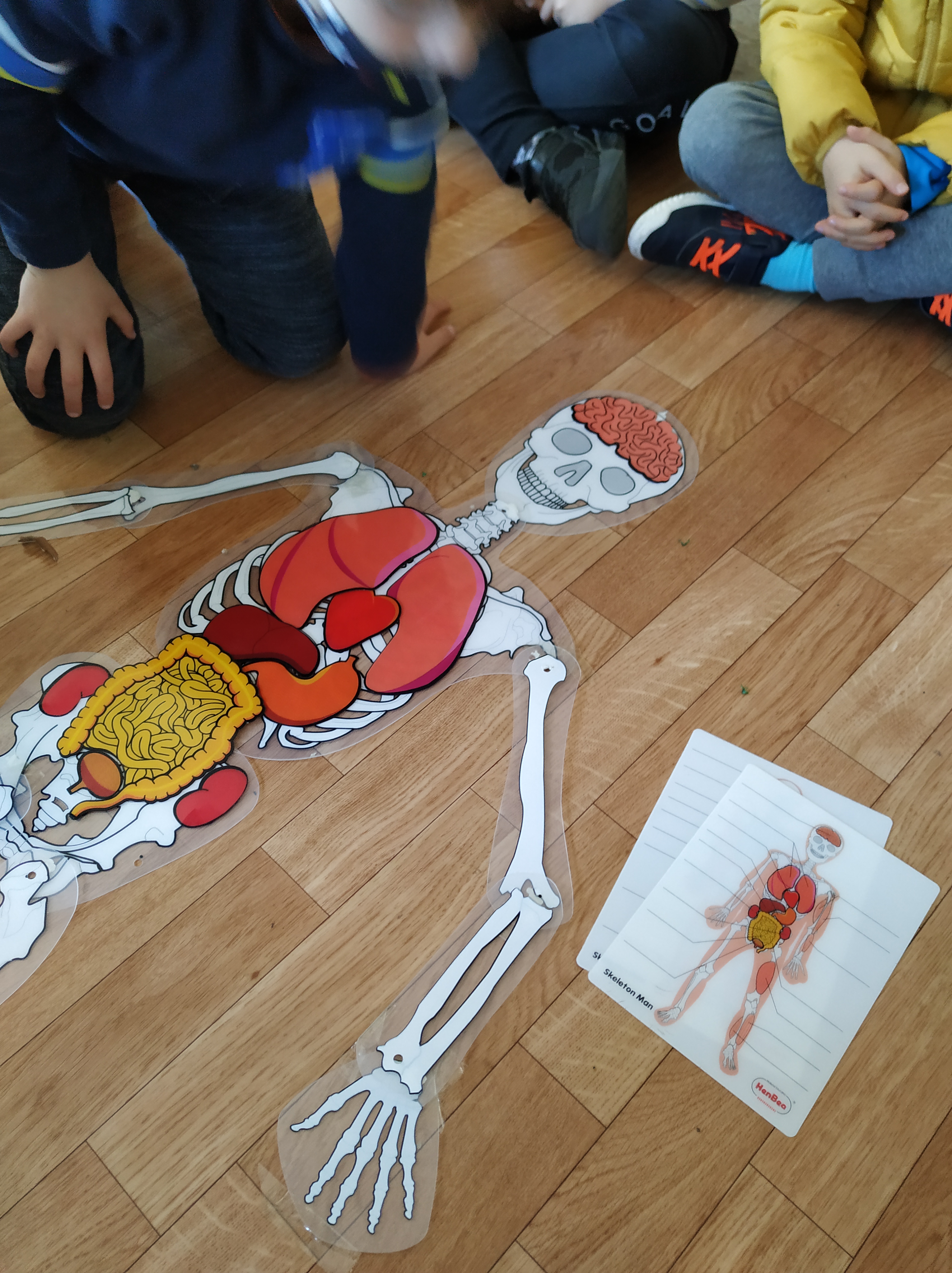 A modo de juego también ordenamos entre todos los órganos internos presentados a través de un pack muy completo que incluye tanto esqueleto como órganos internos. Después por grupos ordenamos las figuras del hombre y de la mujer. Y por último por equipos de 4/5 niños y niñas ordenábamos y nombrábamos los órganos corrigiendo nuestra actividad con libros de consulta. (reto 4).