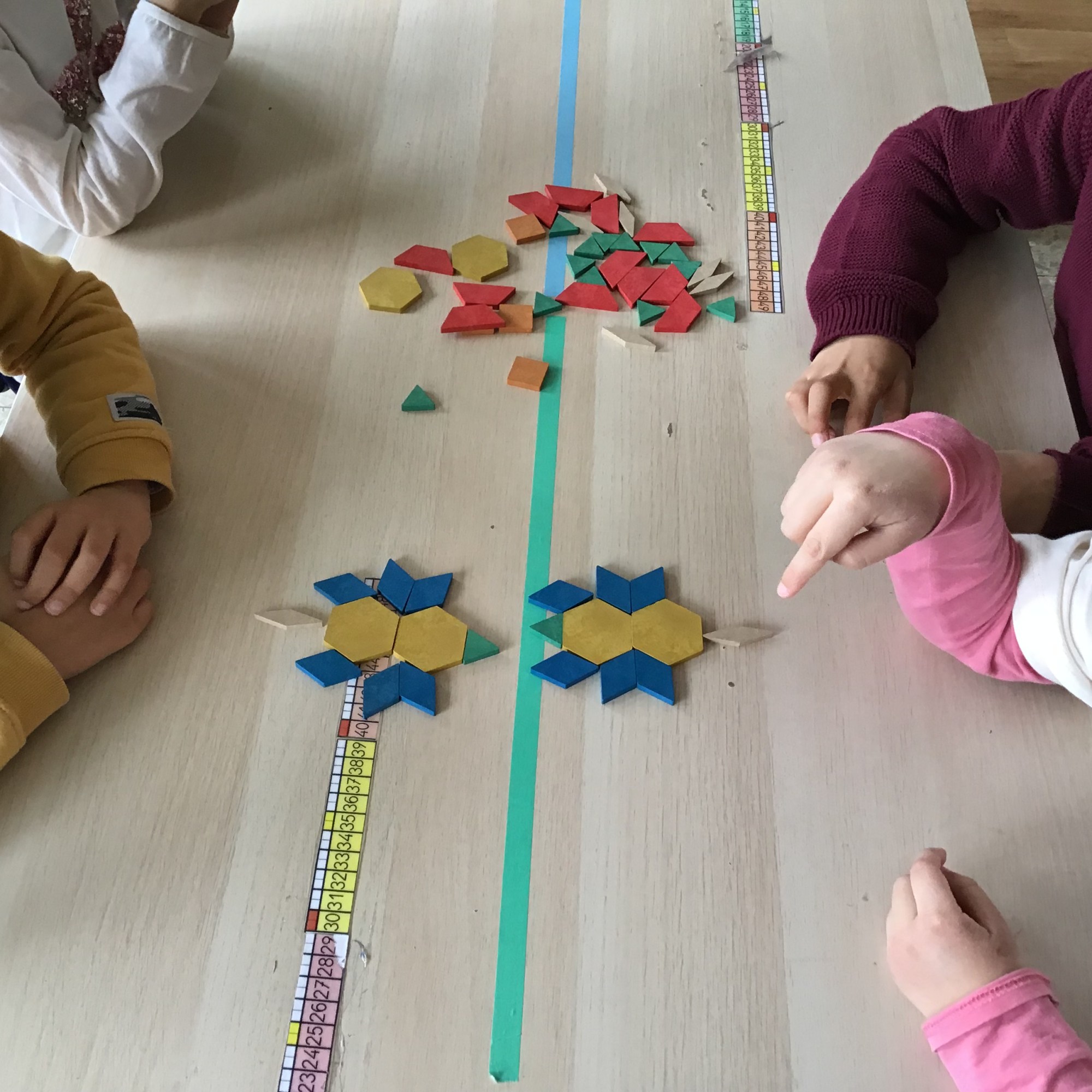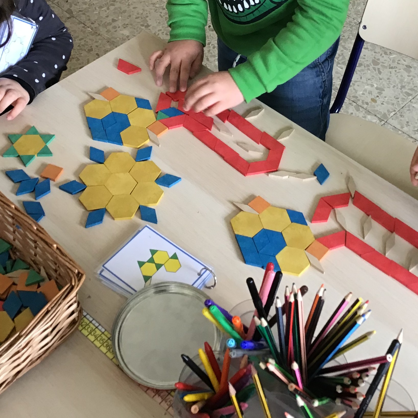 Hay infinitas propuestas pero nosotras enfocamos el material en primer lugar a utilizarlo libremente para composiciones, después a seguir patrones, también para plantear retos y por último para introducir la Simetría.