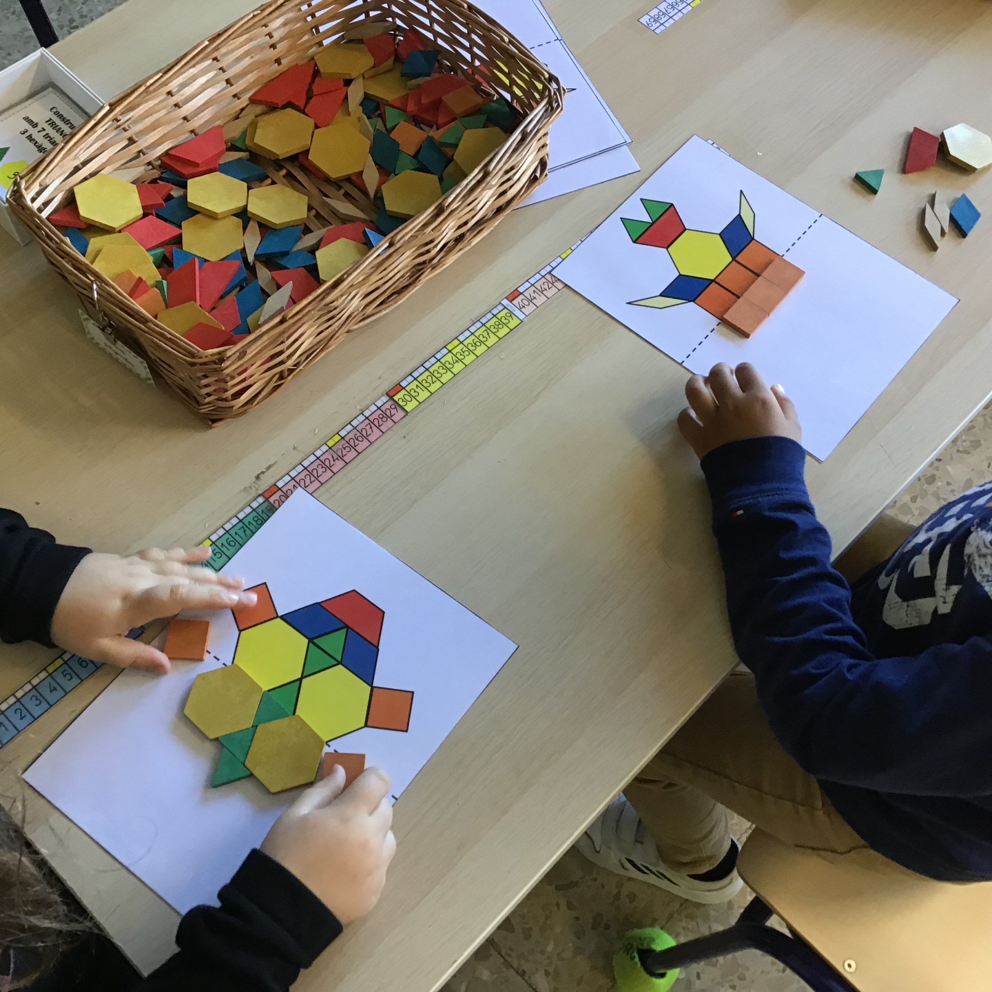 Nuestro objetivo fue que jugaran, trabajaran, aprendieran, experimentaran, crearan … por lo tanto no hubo ninguna condición, tan solo respetar el material 😉 Tenían unas tarjetas de dibujos, figuras y formas de referencia pero en cuanto se vieron desenvueltos en sus propias creaciones quedaron en un segundo plano.
