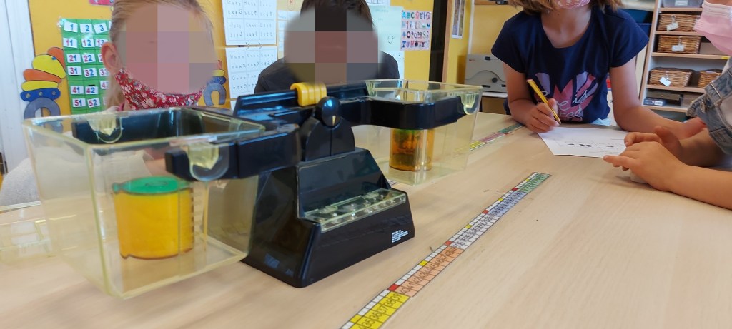 Después de estas actividades estábamos tan inmersos en el mundo de los materiales que era necesario aportar un poco de teoría introduciendo contenidos sobre la Materia y sus dos grandes características la Masa y el Volumen, y fue una gran ocasión para relacionar nuestro proyecto con el área de Matemáticas.