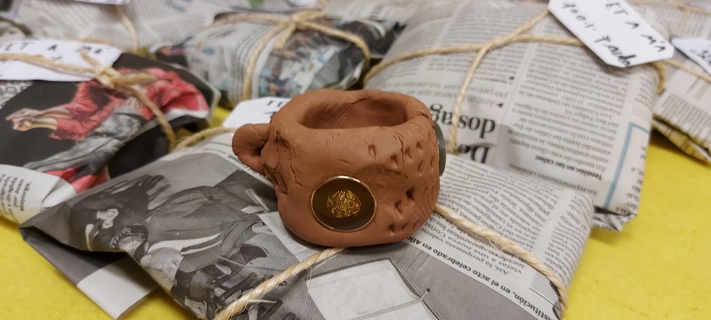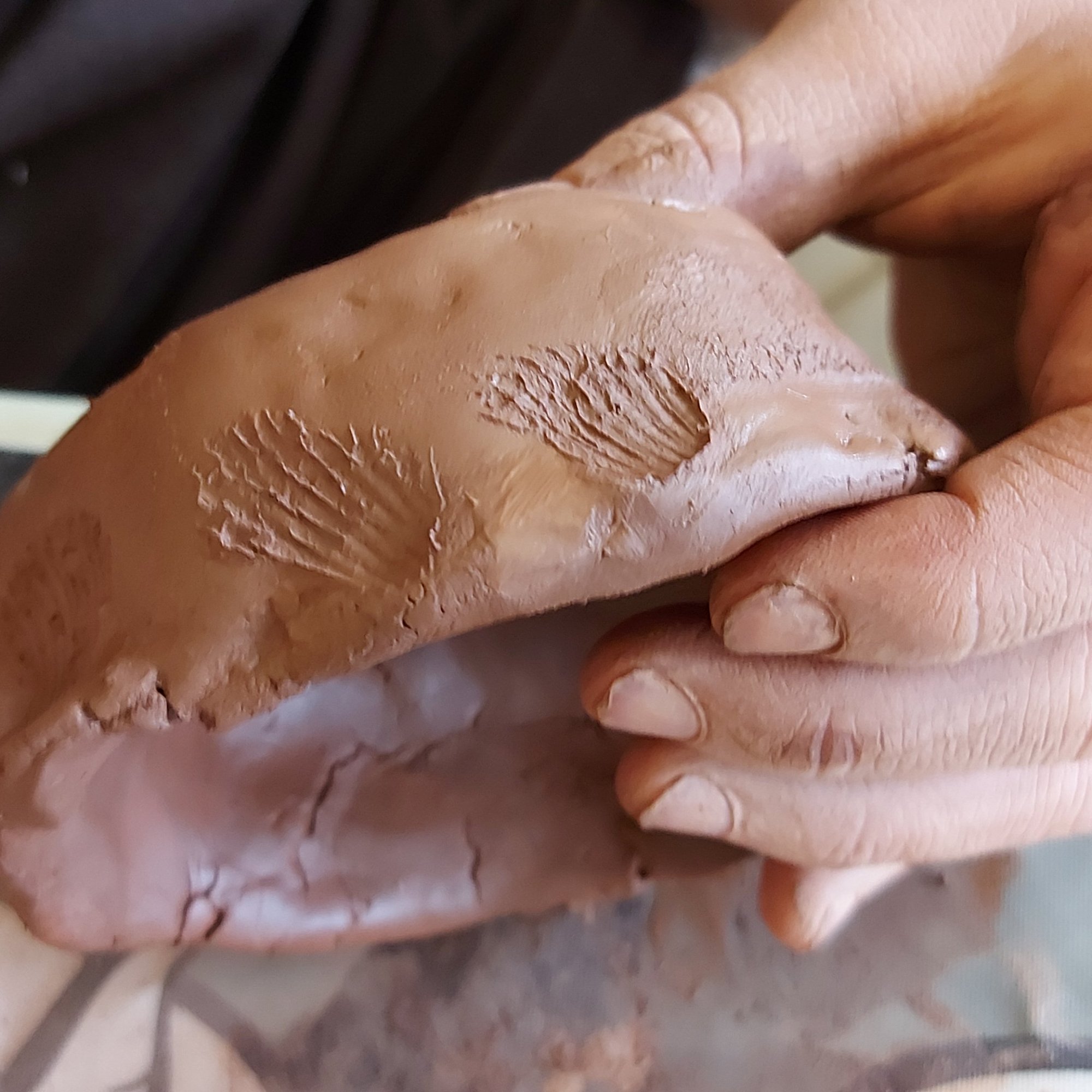 En varias sesiones tuvieron su momento «arcilla» donde se encontraron con la arcilla pero también con instrumentos de modelaje, estampación o decoración. No solamente pusieron en marcha el tacto y la motricidad fina amasando, deslizando, modelando … si no que también la vista fue un sentido para ver más allá aquello que querían crear. El resultado fue unas piezas de pura alfarería maravillosas 😉
