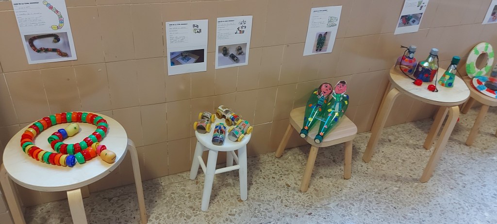 Y además a la vuelta de vacaciones organizamos una pequeña exposición bajo el nombre «Museo del Juguete» donde compartimos con los compis del cole nuestras creaciones.