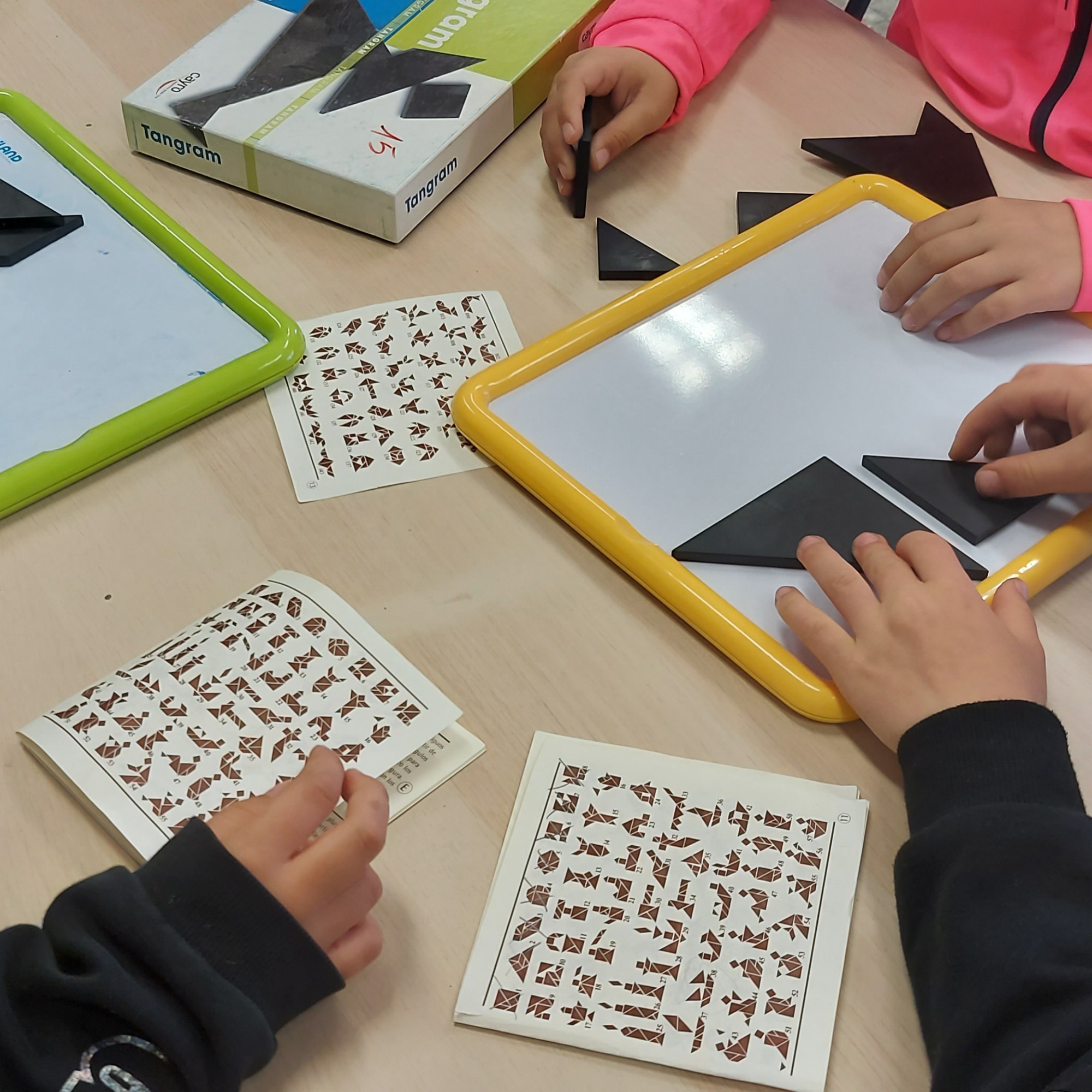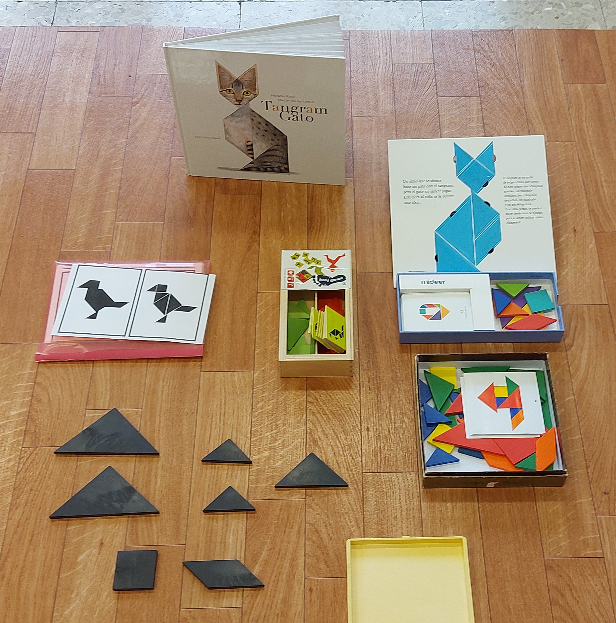 Nosotros tenemos en clase diferentes clases de Tangram que siempre han gustado mucho a los niños y niñas, por lo tanto les damos aún más difusión y analizamos las características de cada uno.