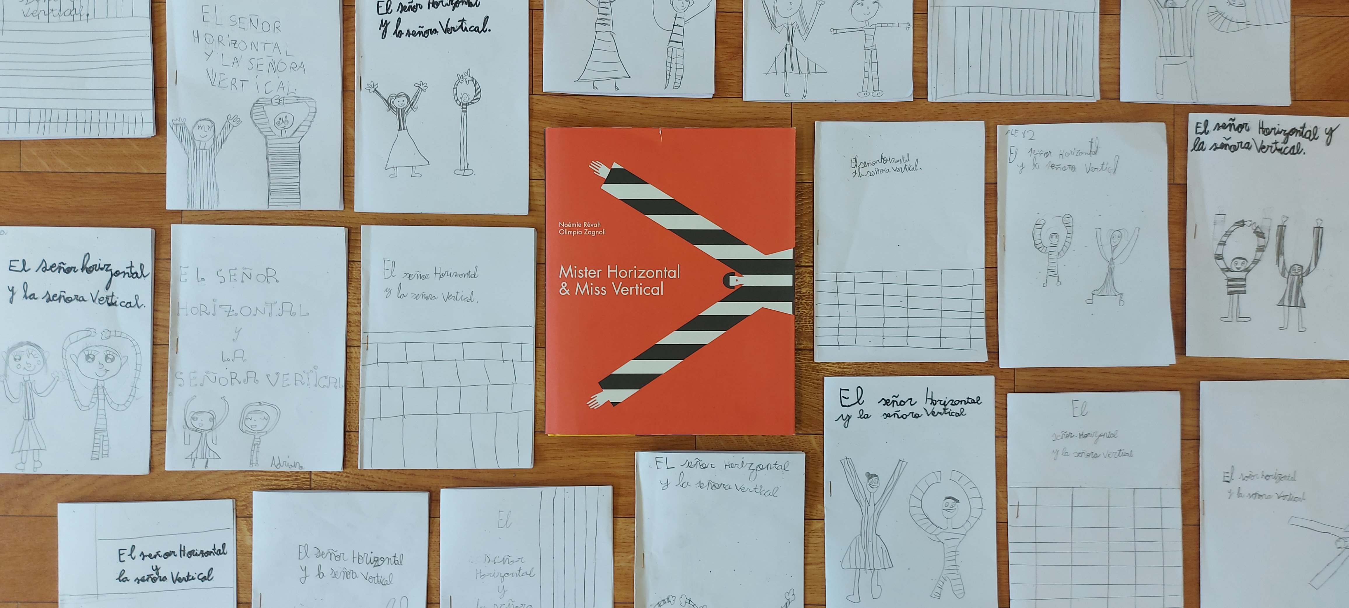 Otro de los contenidos que retomamos fue la Horizontalidad y la Verticalidad. De la mano del cuento Mr Horizontal and Ms. Vertical hablamos de las líneas horizontales y verticales así como los movimientos que las dibujan.