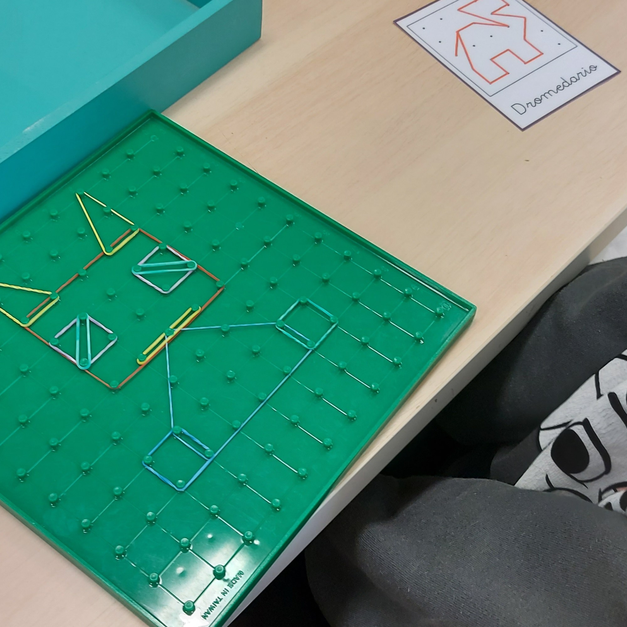 Para cerrar nuestro particular «non stop» geométrico lanzamos propuestas con geoplanos, composiciones en la mesa de luz, bloques lógicos, simetría y paisajes geométricos.