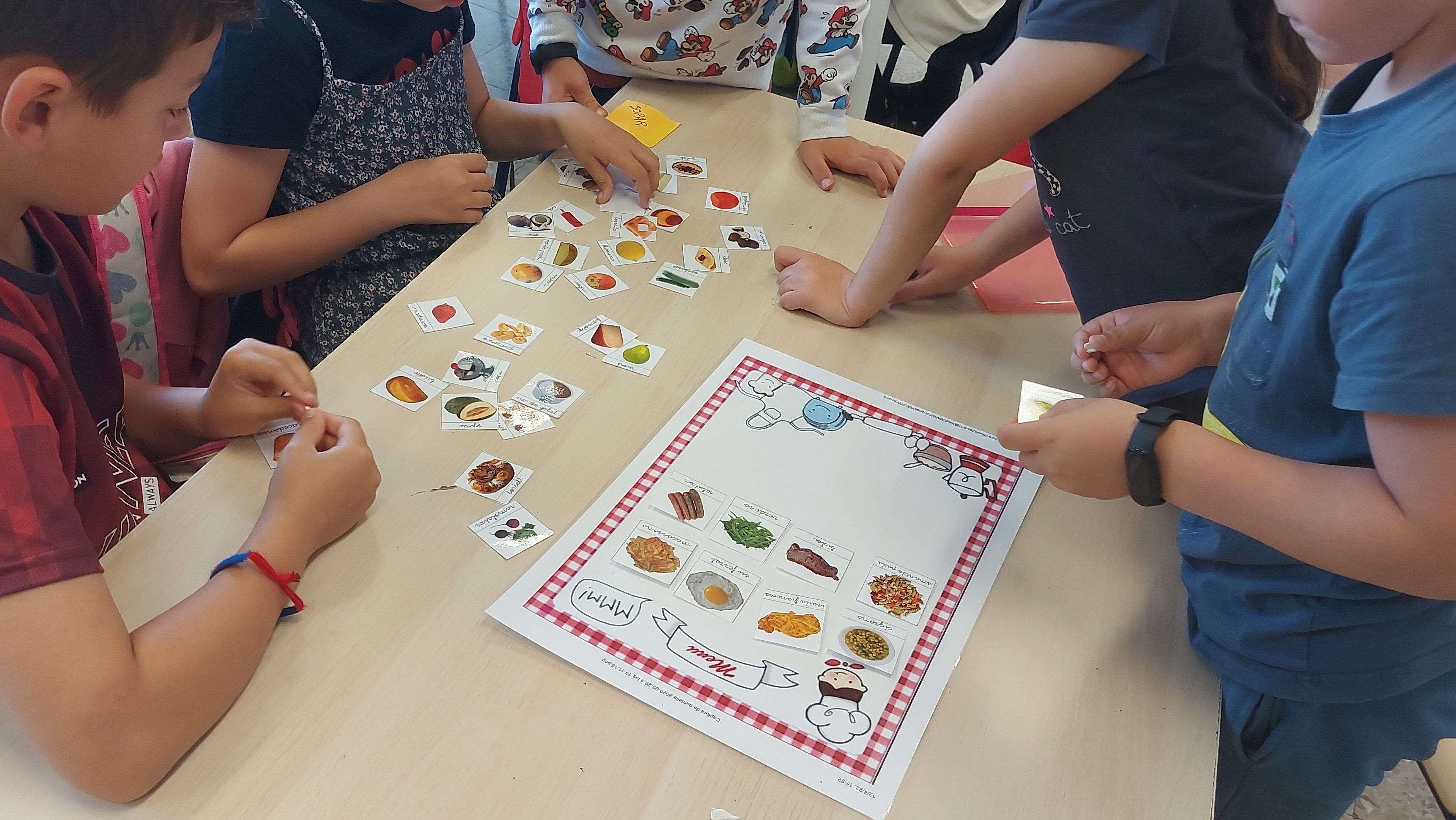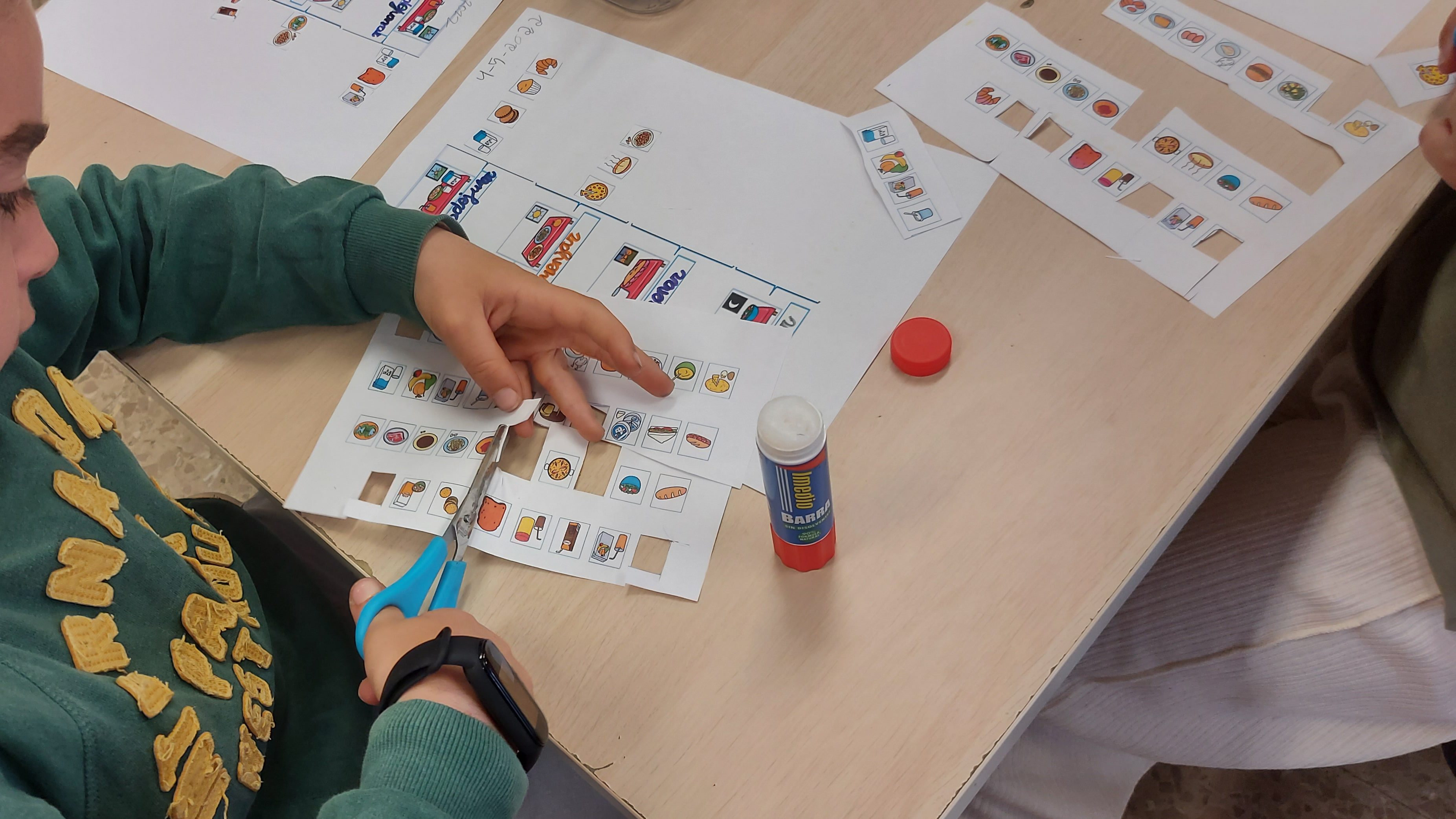 Actividad 1, por equipos repartimos unas plantillas y unas tarjetas de alimentos. Cada equipo es un momento del día (desayuno, comida, merienda y cena). Deberán elegir qué alimentos son más adecuados para el momento del día que le ha tocado y después compartir sus propuestas con el resto de la clase.
