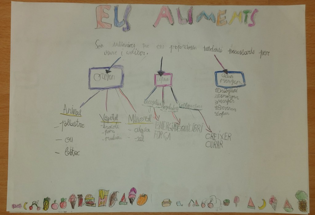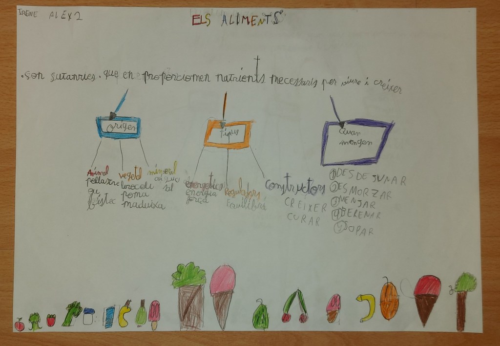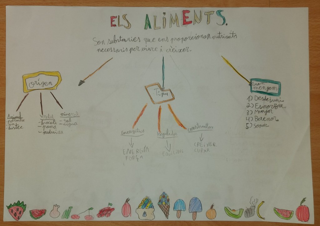 Además para refresacar la parte más teórica del proyecto elaboramos unos mapas conceptuales por parejas que recogían toda la información aprendida organizada esquemática en una hoja A3.