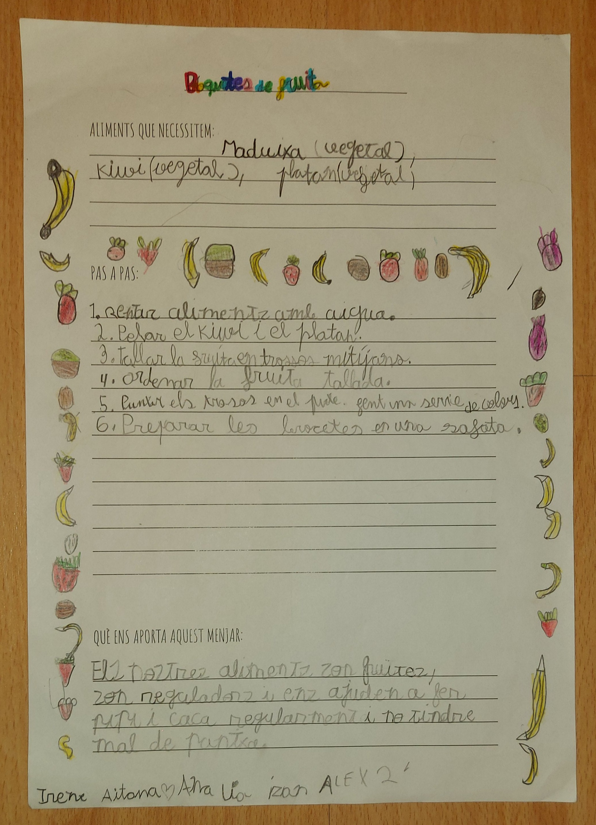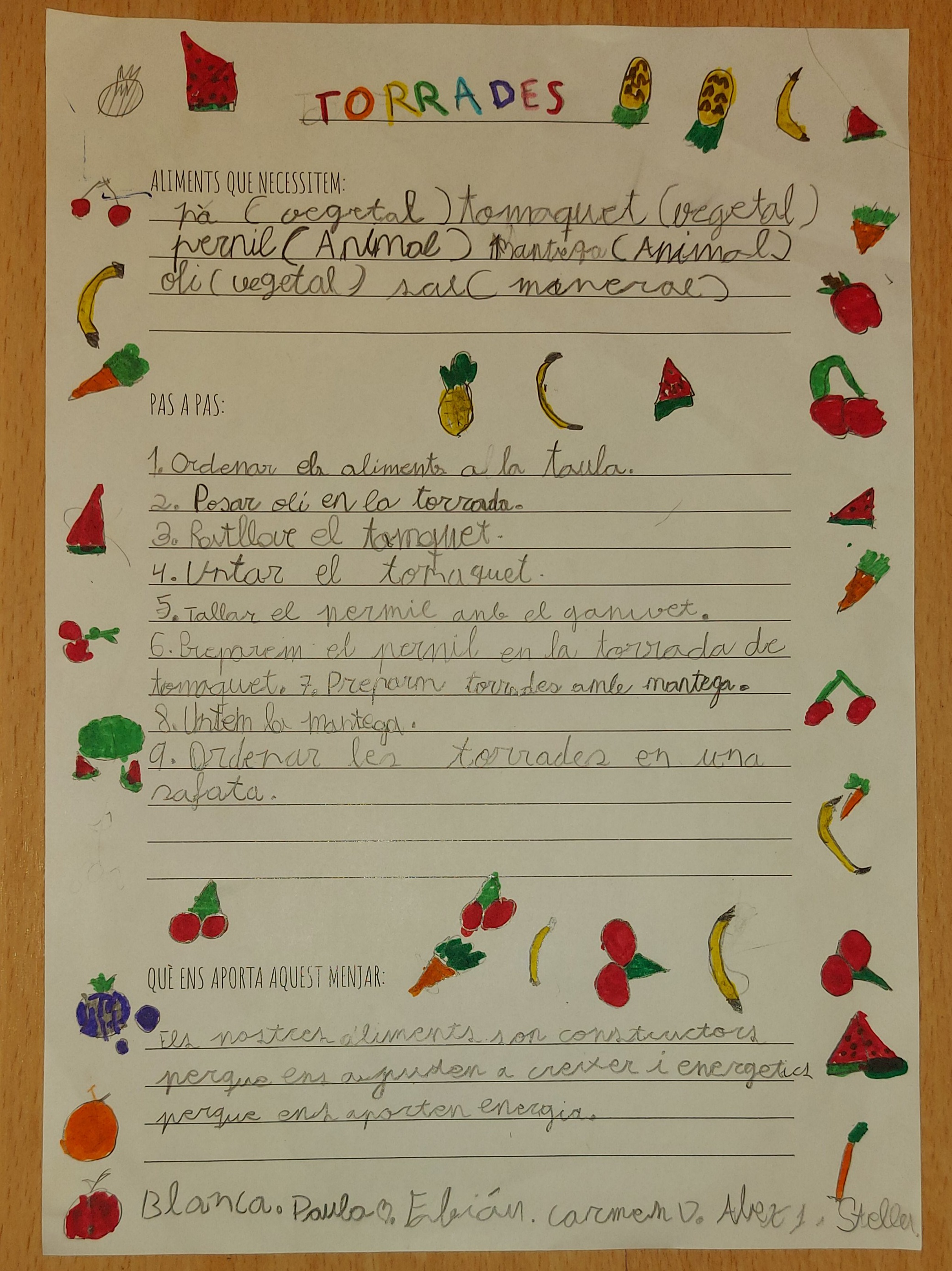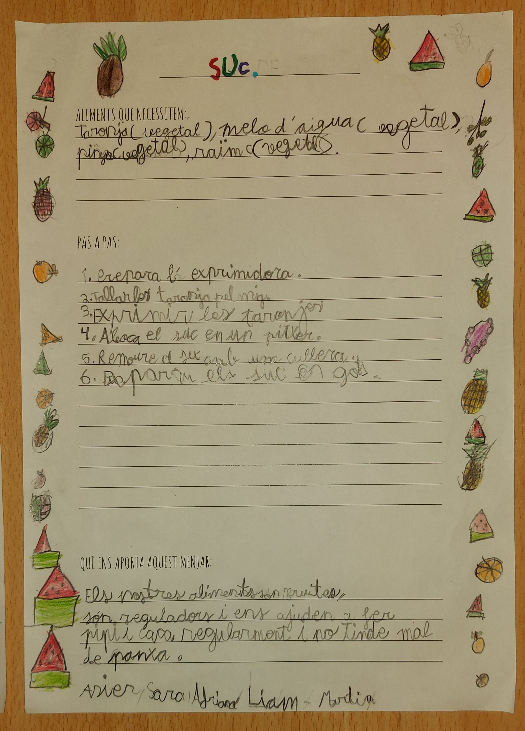 Una vez trabajadas las recetas y puestas en común con el resto de la clase, las profes nos encargamos de comprar los alimentos y las familias de traer los utensilios necesarios como por ejemplo exprimidoras.