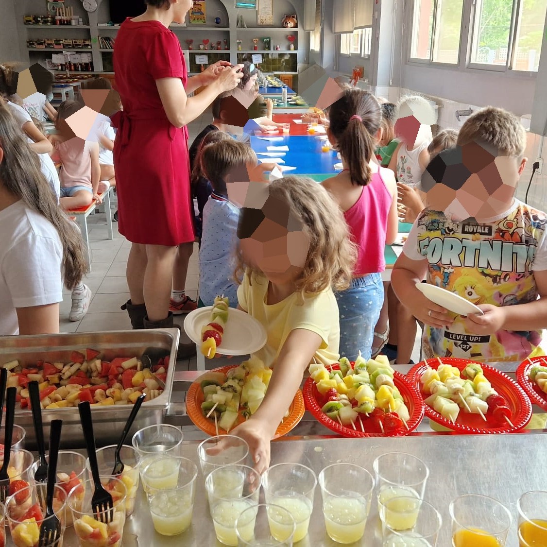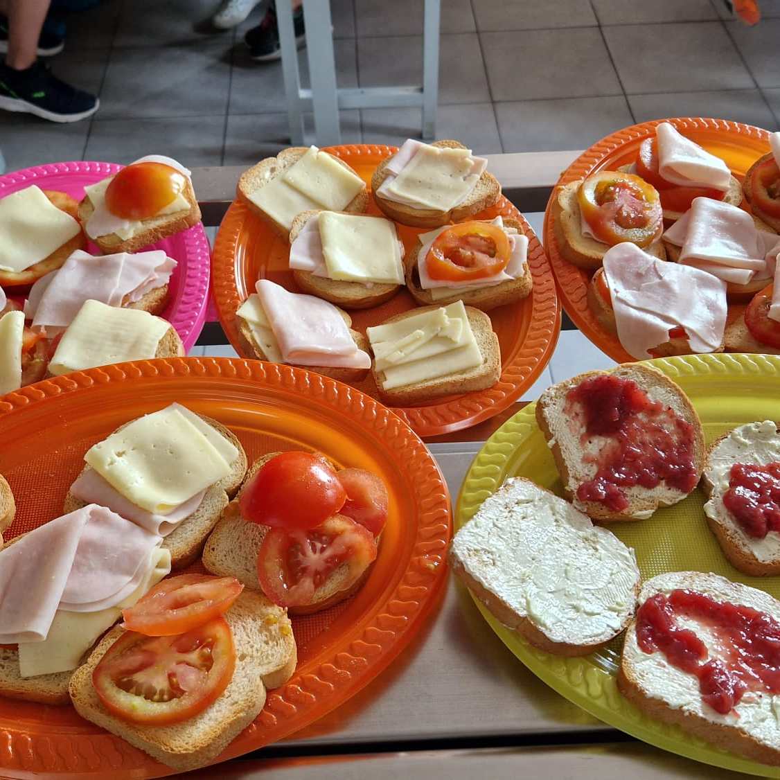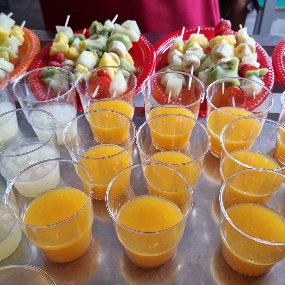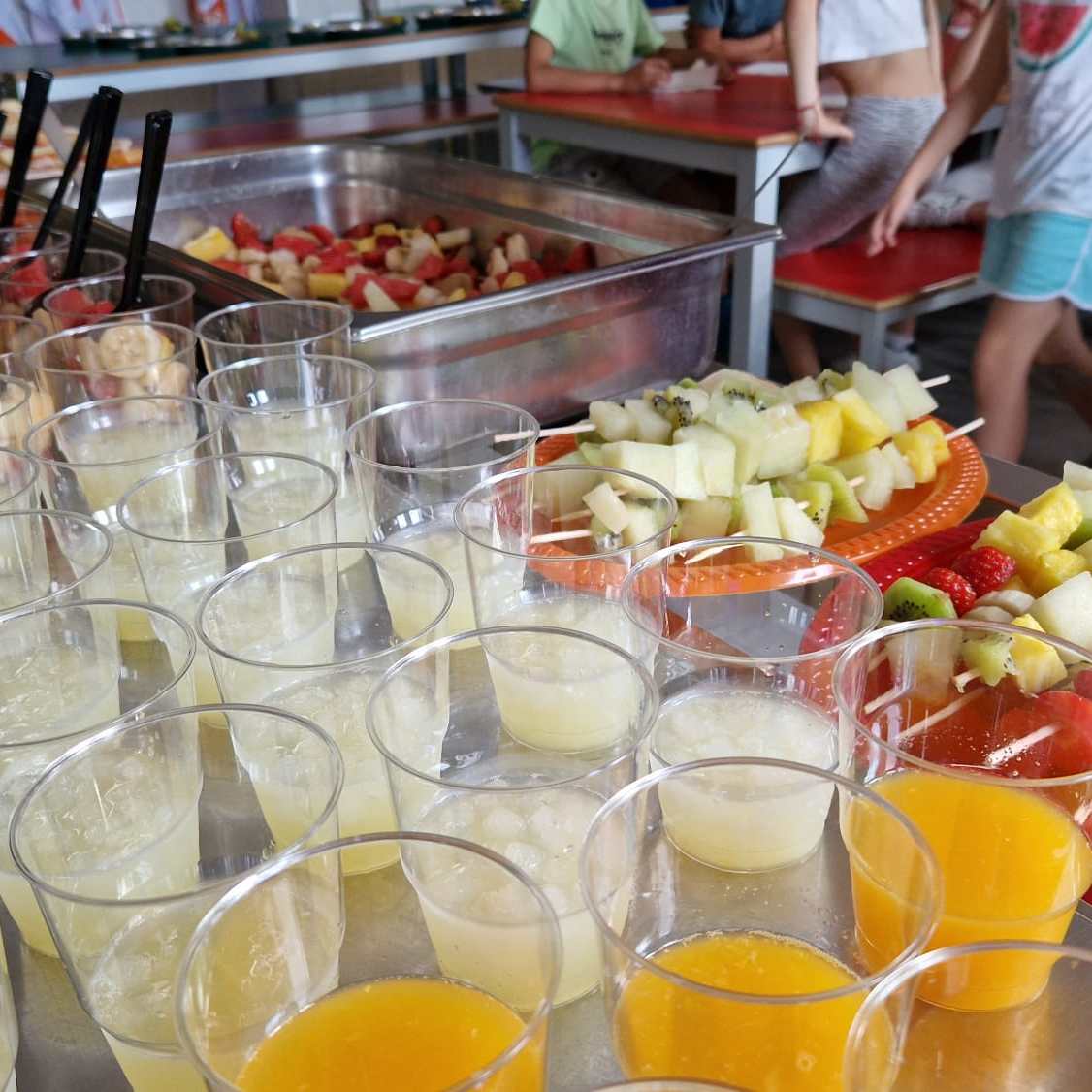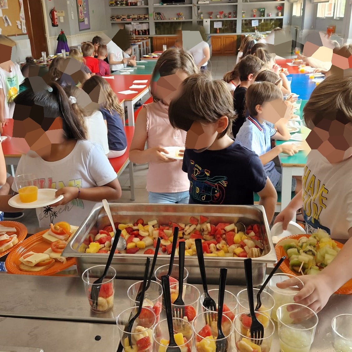 A modo de buffet libre, los peques se fueron sirviendo zumo de naranaja, tostadas, brochetas de frutas, macedonia … un almuerzo realmente saludable.