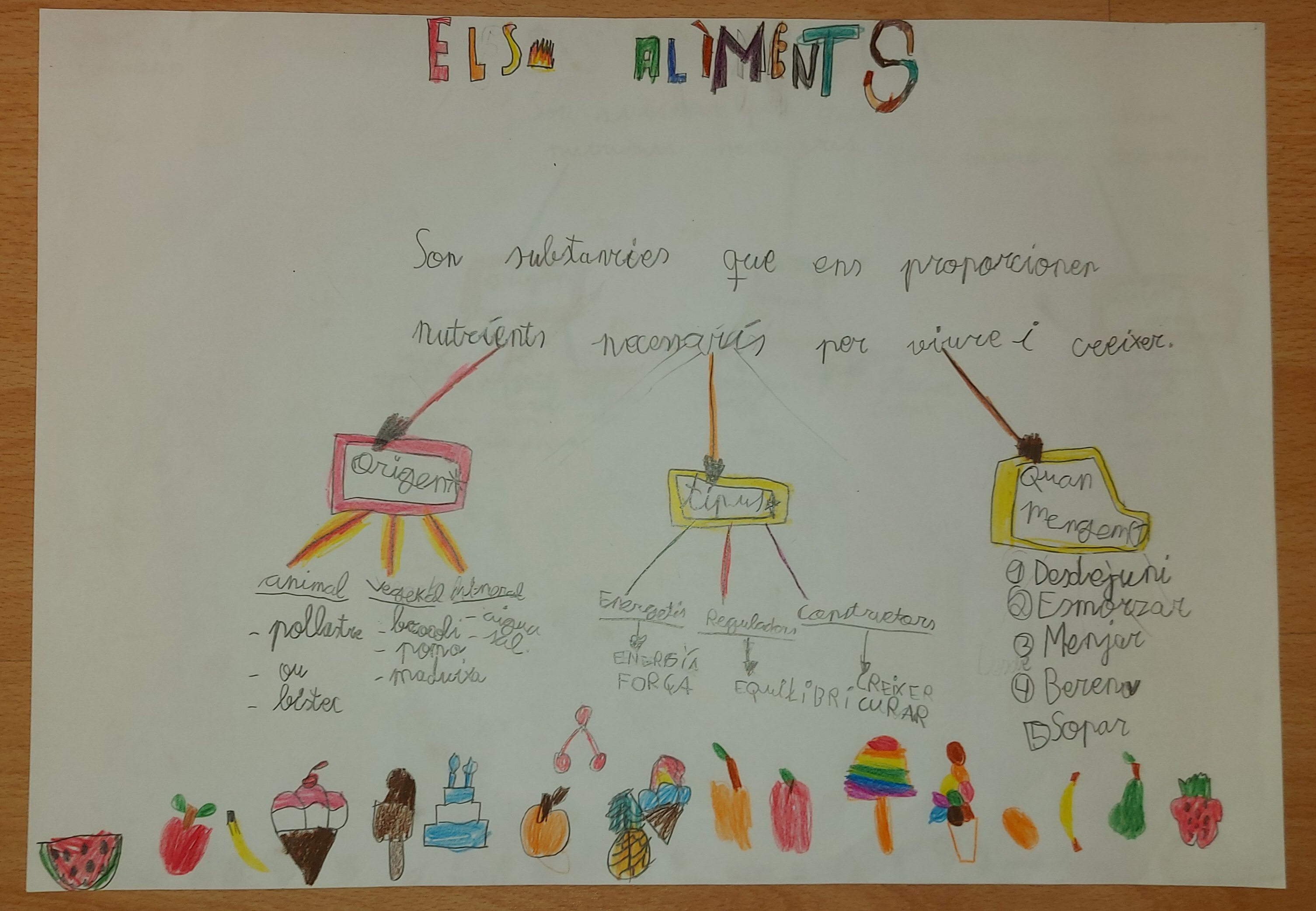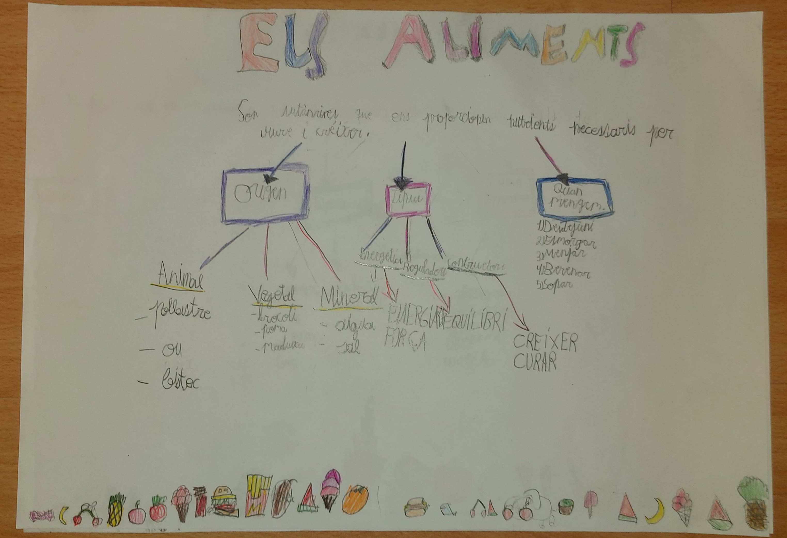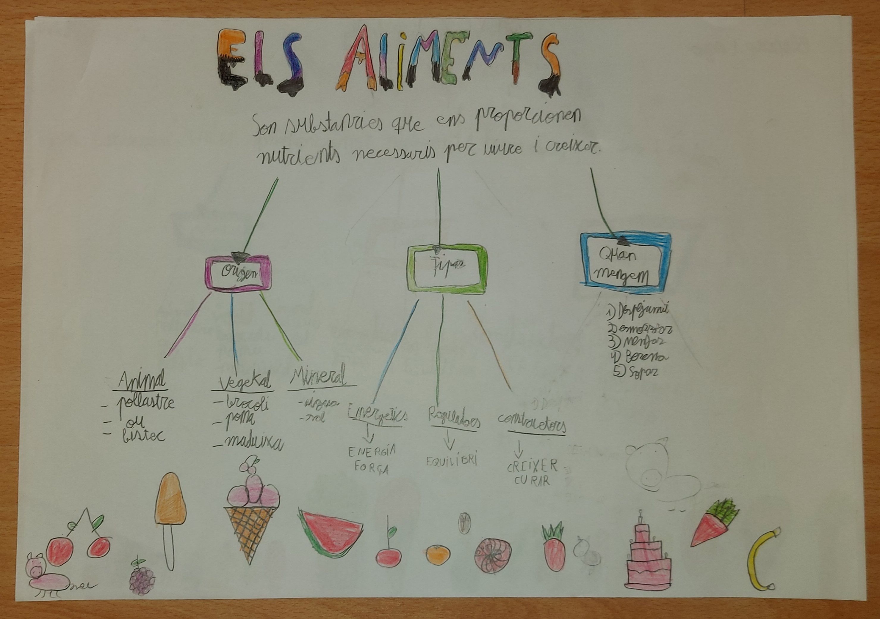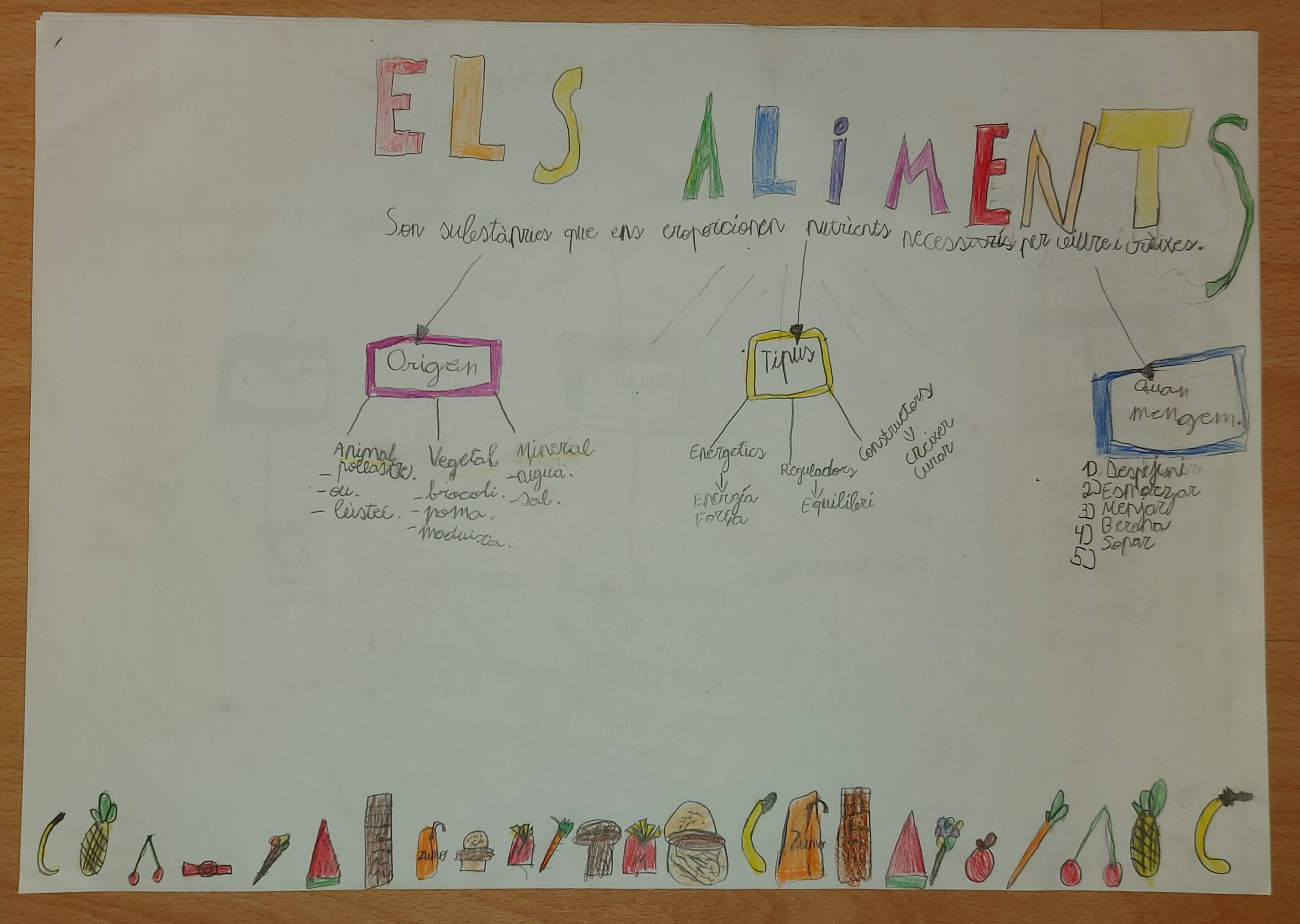 Además para refresacar la parte más teórica del proyecto elaboramos unos mapas conceptuales por parejas que recogían toda la información aprendida organizada esquemática en una hoja A3.